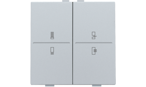 Tweevoudige toets voor een busdrukknop met 4 bedieningsknoppen en 4 feedbackleds. De toets is voorzien van een regime-opdruk. Afwerkingskleur: sterling.