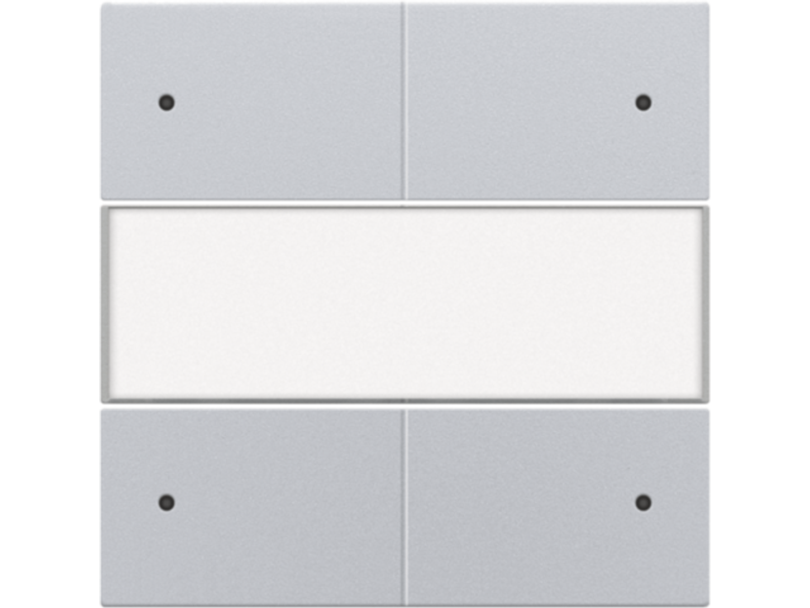 Centraalplaat met 4 potentiaal vrije drukknoppen van 24V. Deze drukknoppen zijn speciaal uitgevoerd met een Led lampje en label. Je kan vlot verschillende lichtpunten bedienen in 1 of meerdere ruimtes. Door middel van het ledlampje weet je snel of je de lichtbron geactiveerd hebt of niet. Op het labelvlak kan je gemakkelijk iconen aanbrengen voor de aanduiding van je lichtpunten. Afwerkingskleur: sterling.