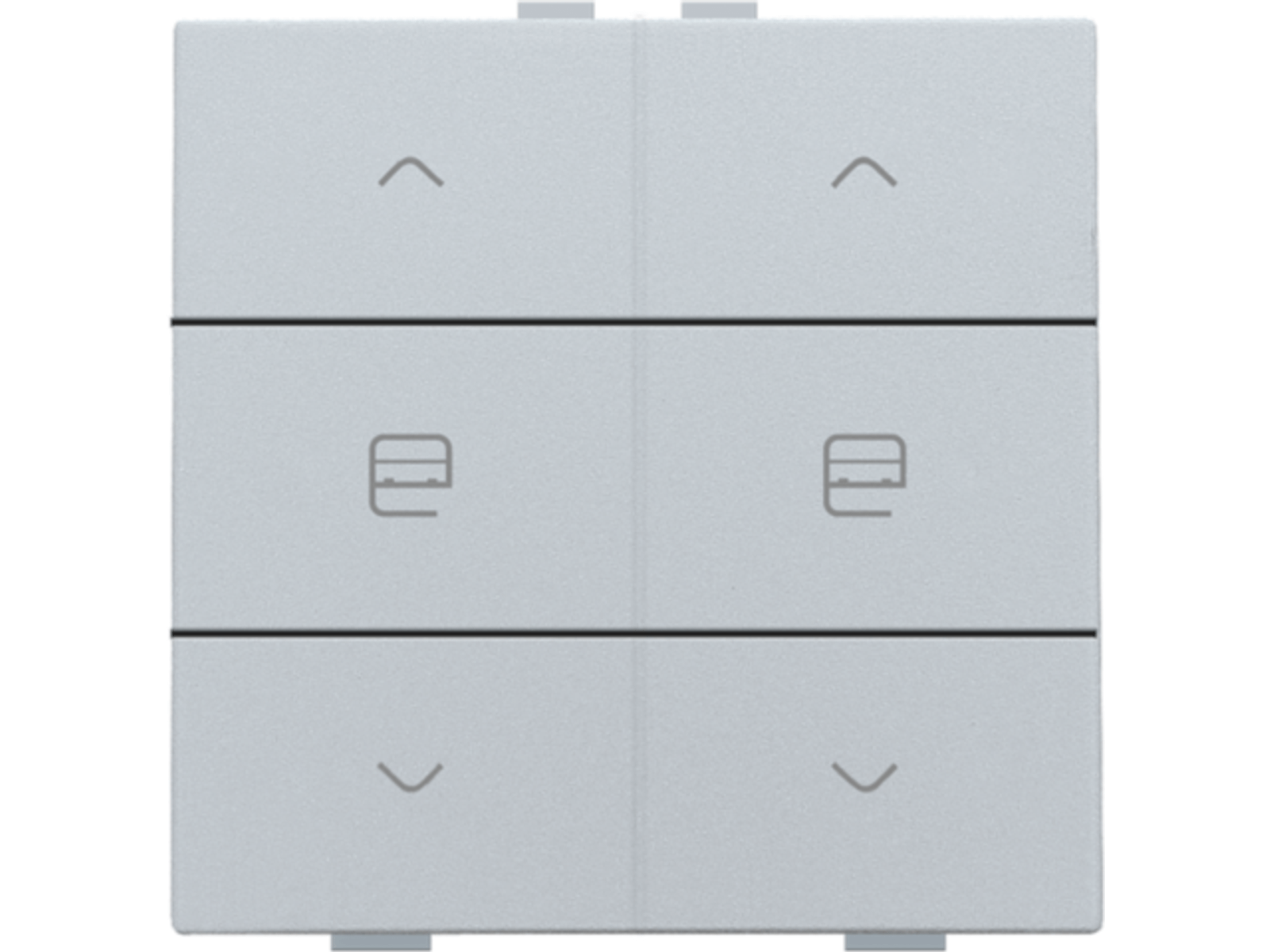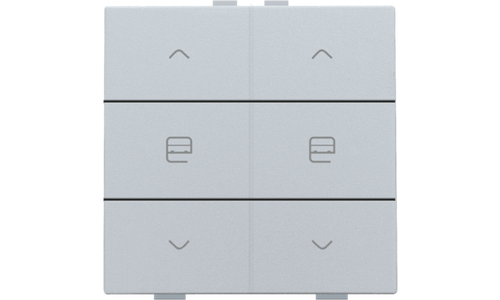 Met deze drukknop stuur je twee groepen van rolluiken, gordijnen of zonweringen. Hij wordt via een klikmechanisme op de muurprint bevestigd. Mechanisme inclusief toets. Afwerkingskleur: sterling.