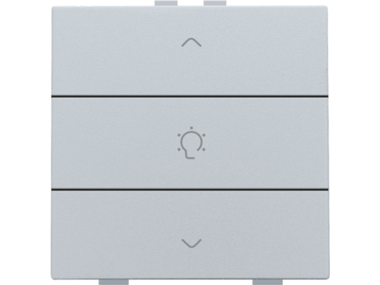 Met deze drukknop dim je één lichtpunt of lichtkring. Hij wordt via een klikmechanisme op de muurprint bevestigd. Mechanisme inclusief toets. Afwerkingskleur: sterling.