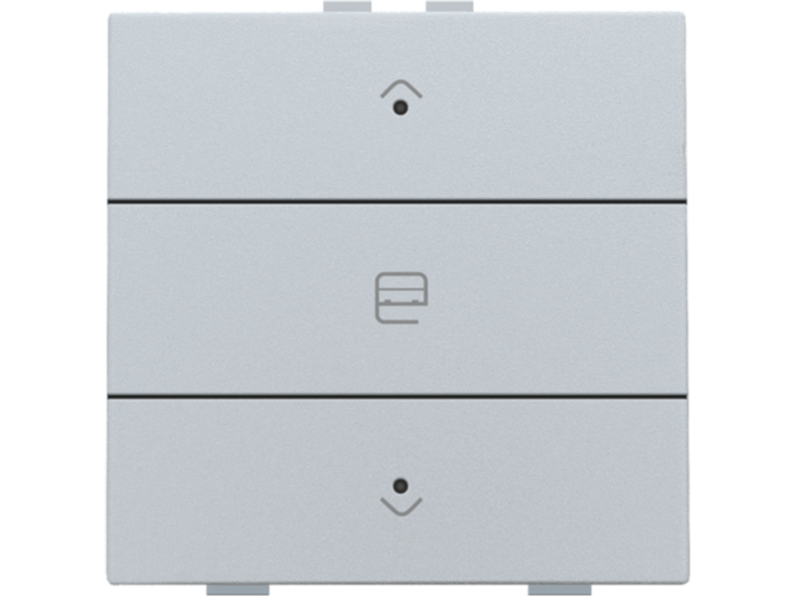 Met deze drukknop stuur je een groep van rolluiken, gordijnen of zonweringen. Hij wordt via een klikmechanisme op de muurprint bevestigd. Een led geeft aan in welke positie het rolluik, het gordijn of de zonwering zicht bevindt. Mechanisme inclusief toets. Afwerkingskleur: sterling.