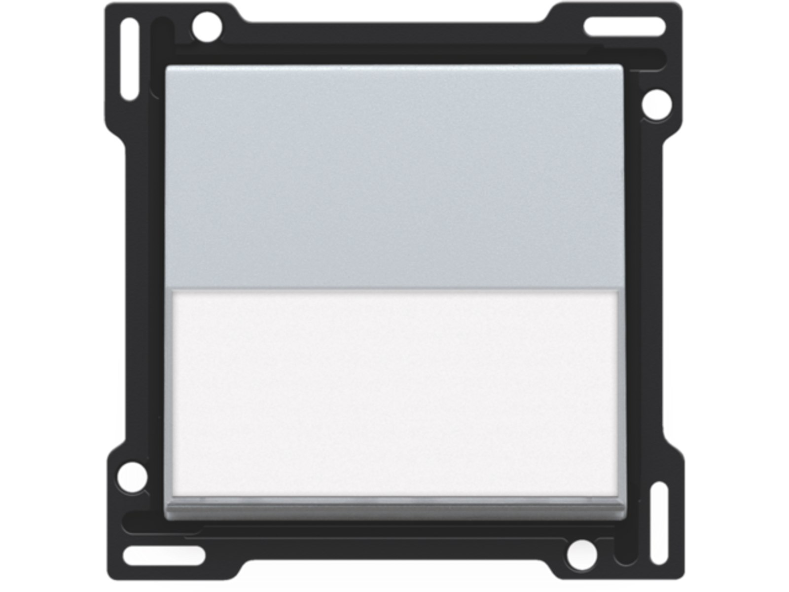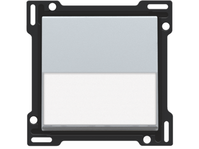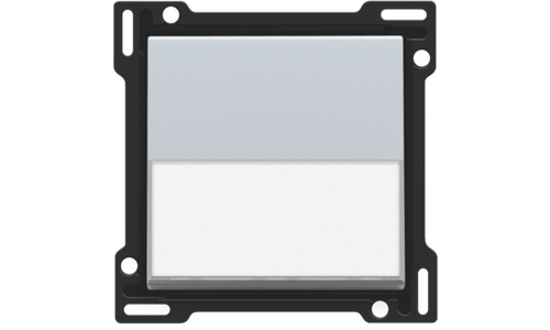 Centraalplaat voor enkelvoudige drukknop met transparant tekstveld. In het transparante tekstveld kan je eenvoudige korte aanduidingen of iconen aanbrengen.