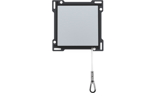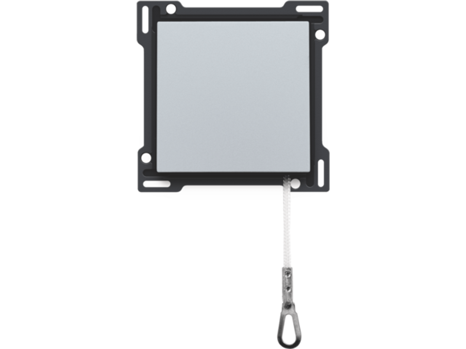 Centraalplaat met trekmechanisme voor drukknop. Door het treksysteem wordt het lichtpunt bediend. Deze toepassing wordt meestal gebruikt in slaapkamers. Afwerkingskleur: sterling.