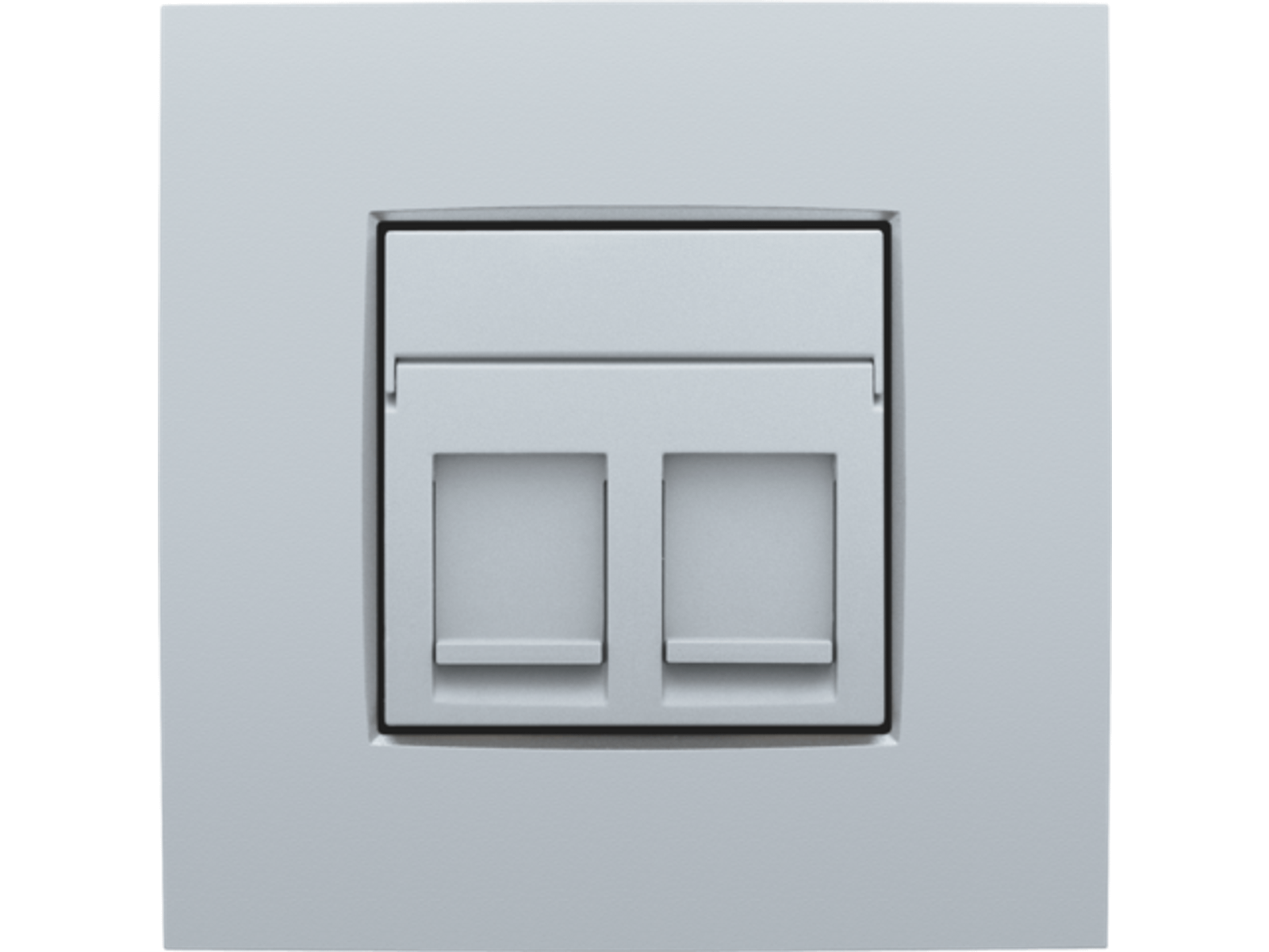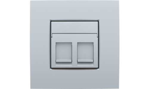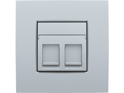 Centraalplaatje voor 2 RJ outlets in een vlakke uitvoering. De centraalplaat bevat een transparant tekstveld waarin je eenvoudig iconen of teksten kan aanbrengen. Afwerkingskleur: sterling.