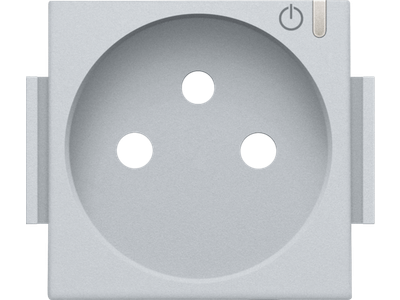 Afwerkingsset voor geconnecteerde schakelbare wandcontactdoos met penaarde en bedieningsknop, sterling