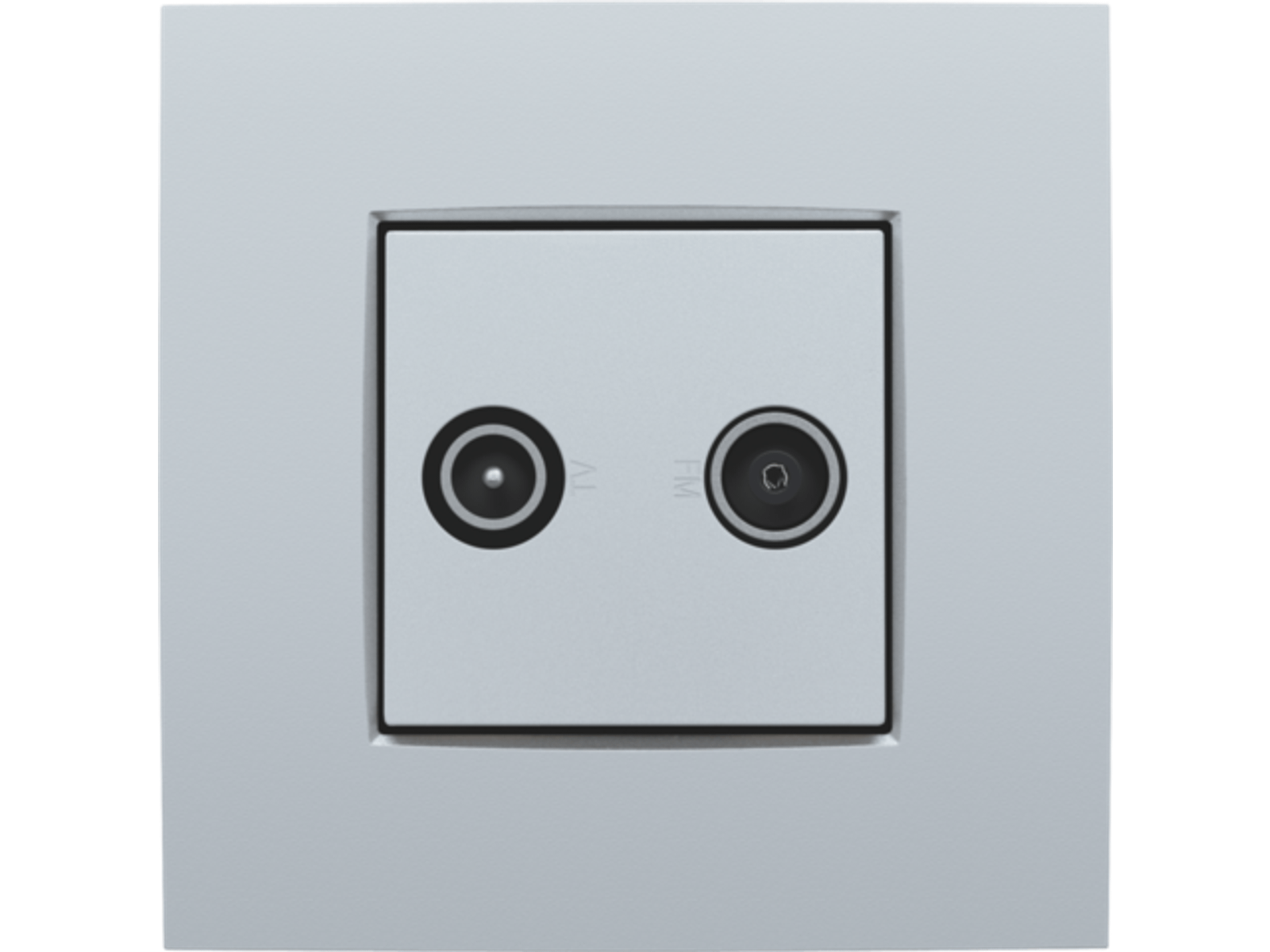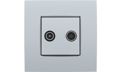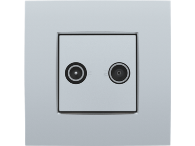 Centraalplaat met 2 enkelvoudige coaxaansluitingen. De eerste ingang is bestemd voor een EDU TV aansluiting. De tweede is bestemd voor FM Telenetr aansluiting. Beiden worden respectievelijk aangeduid met een TV en FM icoon. Afwerkingskleur: sterling.