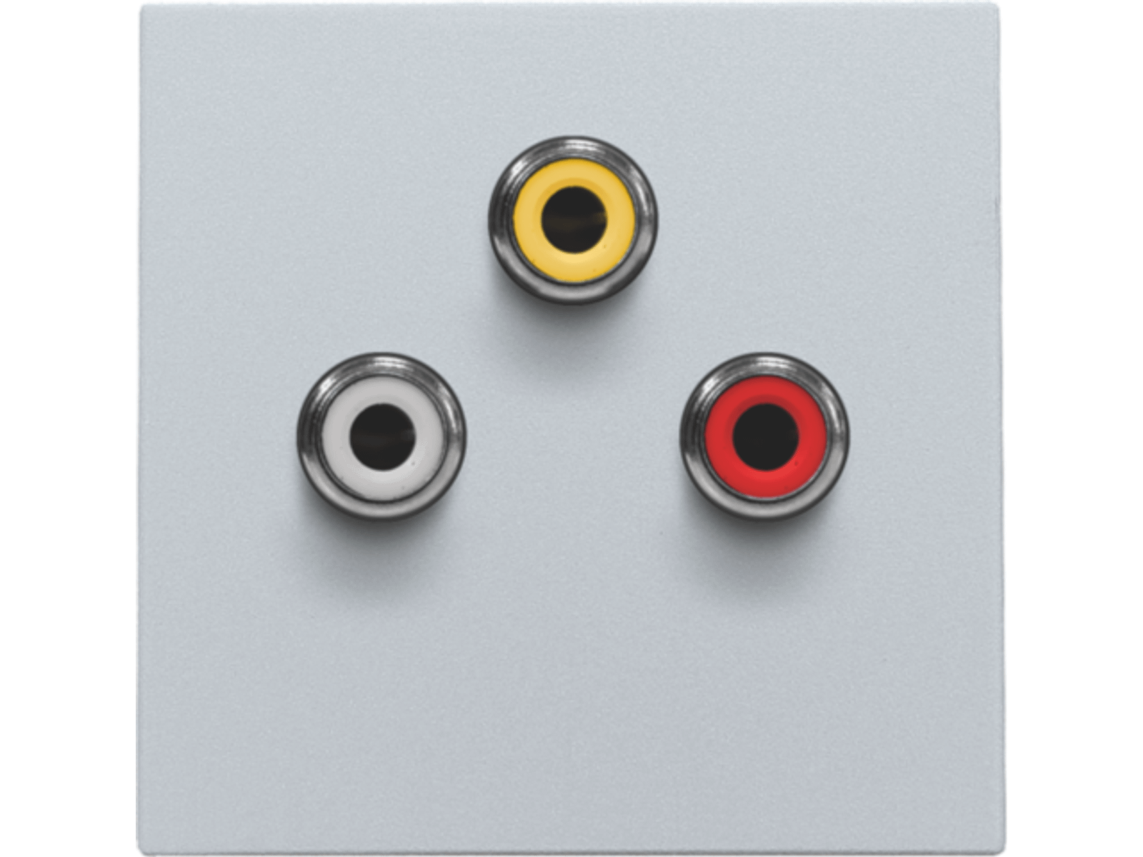 Afwerkingsset met drie cinch-aansluitingingen. Afwerkingskleur: sterling.