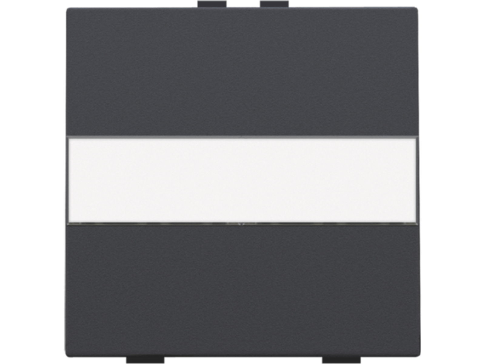 Een enkelvoudige toets met ruimte voor het aanbrengen van een eigen tekst voor een busdrukknop. Afwerkingskleur: anthracite.