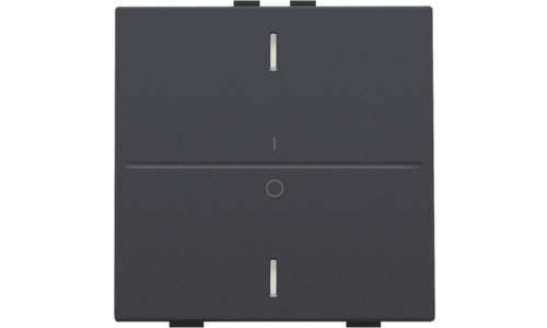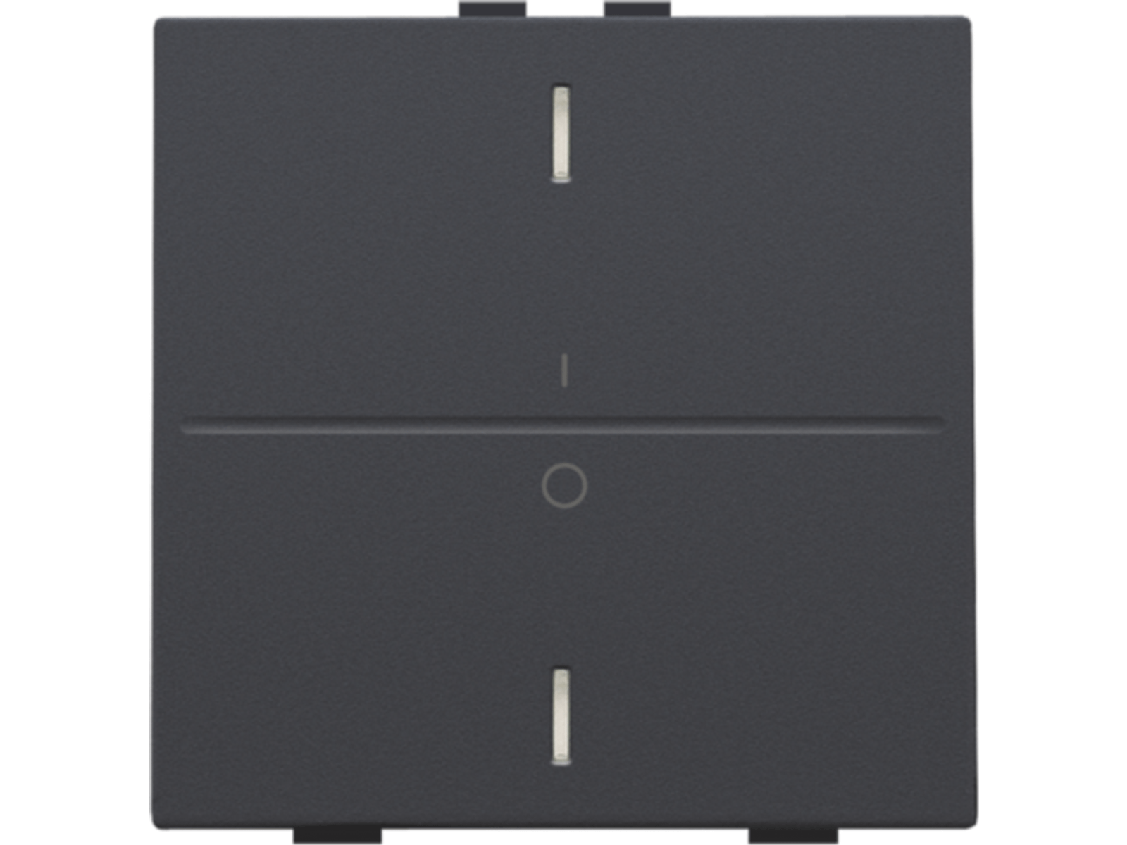 Een enkelvoudige toets met led en symbool 'I' en '0' voor een busdrukknop. Het ledlampje geeft aan wanneer een functie al dan niet geactiveerd is. Afwerkingskleur: anthracite.