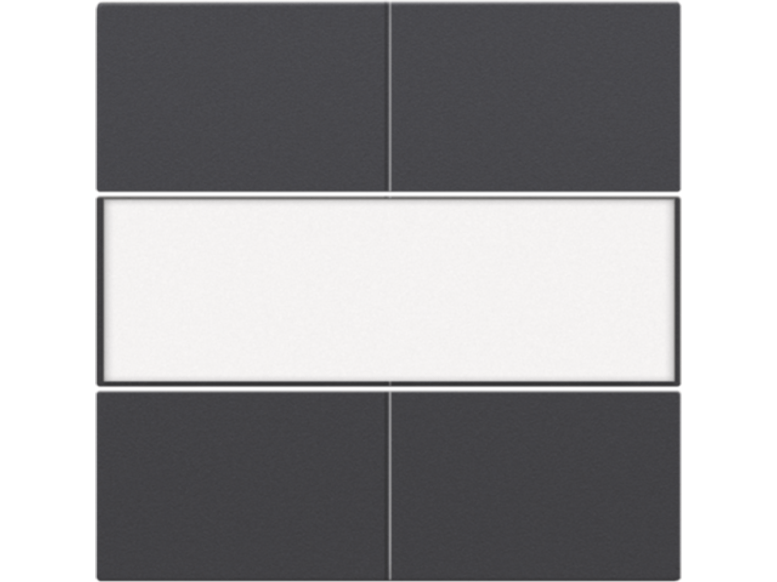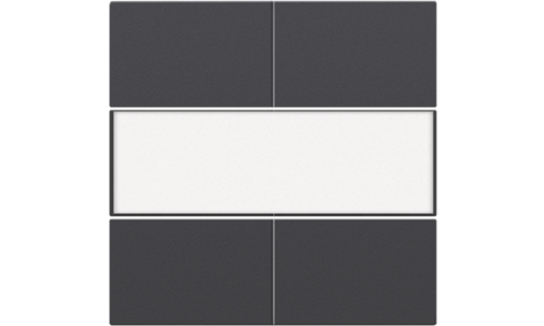 Centraalplaat met 4 potentiaal vrije drukknoppen van 24V. Hiermee kan je vlot verschillende lichtpunten bedienen in 1 of meerdere ruimtes. Op de middenzone van de centraalplaat bevindt zich een tekstveld waar je gemakkelijk aanduidingen of iconen kan opbrengen. Afwerkingskleur: anthracite.