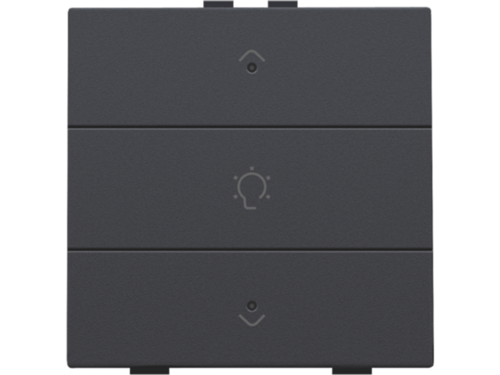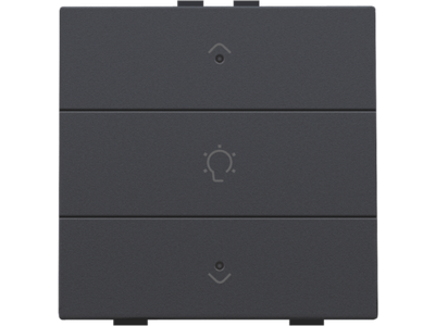 Met deze drukknop dim je één lichtpunt of lichtkring. Hij wordt via een klikmechanisme op de muurprint bevestigd. Een led geeft aan of het licht op- of neergedimd is. Mechanisme inclusief toets. Afwerkingskleur: anthracite.