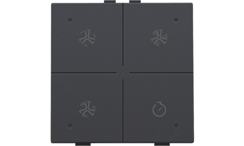 Met deze drukknop stel je vier ventilatiestanden in. Hij wordt via een klikmechanisme op de muurprint bevestigd. Een led geeft aan in welke stand de ventilatie staat. Mechanisme inclusief toets. Afwerkingskleur: anthracite.