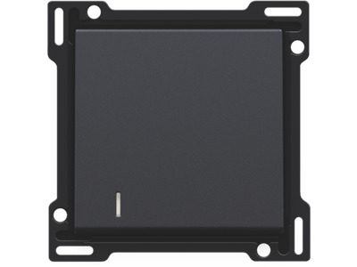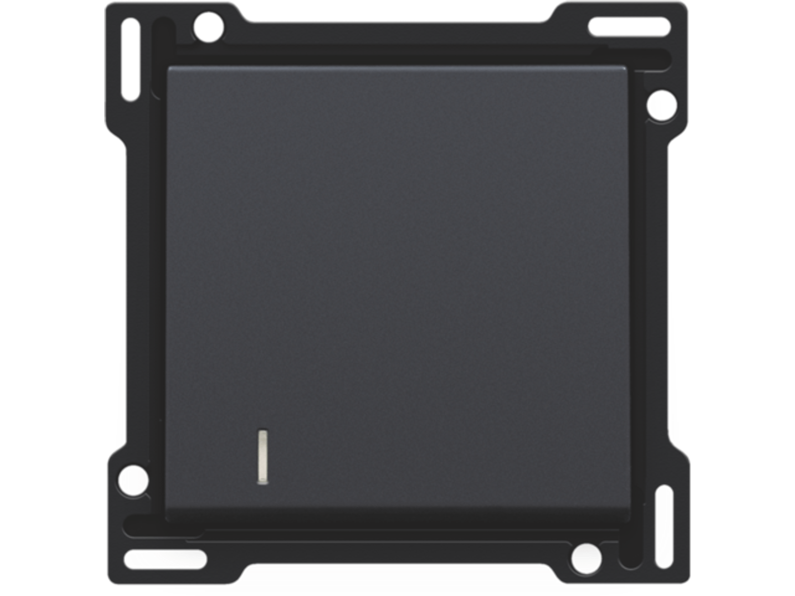 Centraalplaat uitgevoerd met een enkelvoudige drukknop met lens. Met deze drukknop kan je 1 verlichting bedienen. De lens biedt je de mogelijkheid om een ledmodule achter te plaatsen zodat je kan zien of het licht al dan niet ingeschakeld is Afwerkingskleur: anthracite.