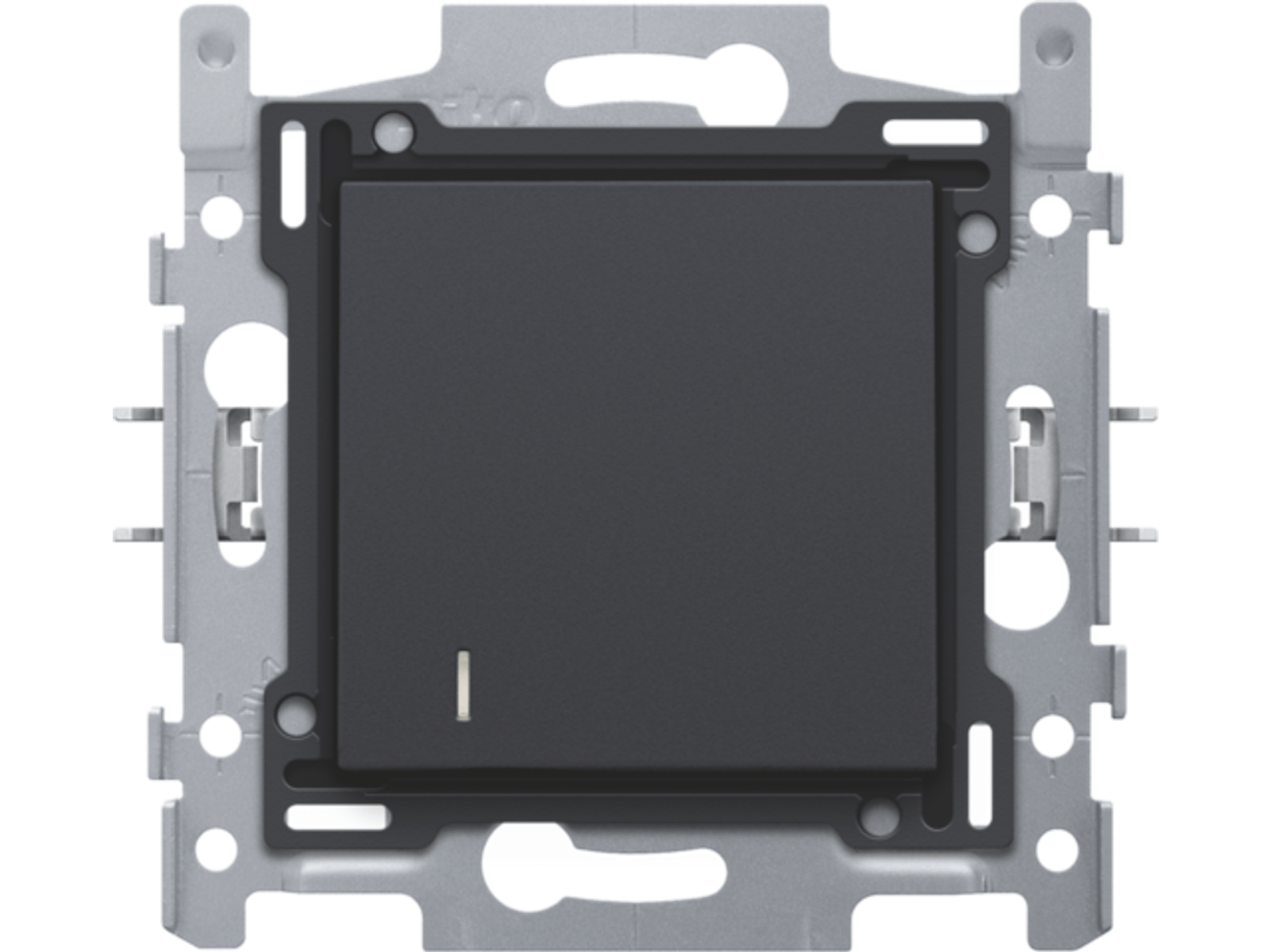 Samengestelde inbouwschakelaar (sokkel en afwerkingsset). De sokkel is uitgerust met insteekklemmen en klauwbevestiging. Deze schakelaar wordt bijna exclusief gebruikt in hotelkamers. Aan de bovenkant van de schakelaar kan je de hotelkaart inbrengen waarbij door middel van de lens aangeven wordt dat je de lichten kunt bedienen in je kamer. Afwerkingskleur: anthracite
