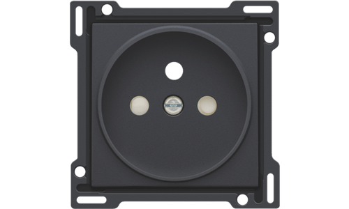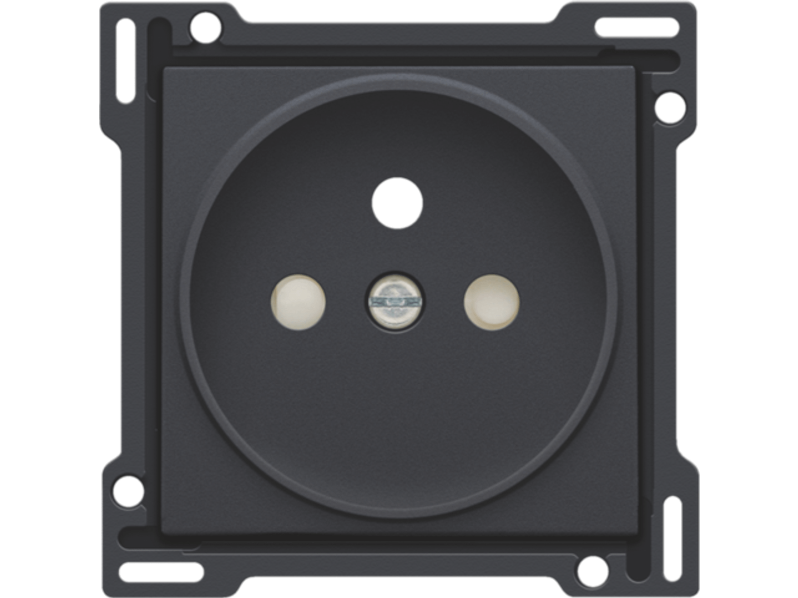 Centraalplaat voor inbouwstopcontact met penaarde en beschermingsafsluiters. Deze centraalplaat dient gebruikt te worden op een stopcontact met inbouwdiepte van 21mm. Afwerkingskleur: anthracite.