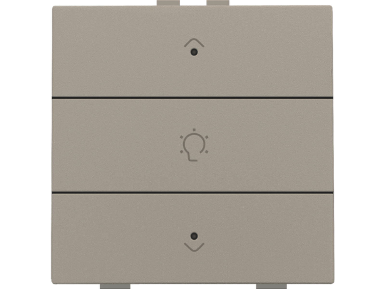 Met deze drukknop dim je één lichtpunt of lichtkring. Hij wordt via een klikmechanisme op de muurprint bevestigd. Een led geeft aan of het licht op- of neergedimd is. Mechanisme inclusief toets. Afwerkingskleur: bronze.