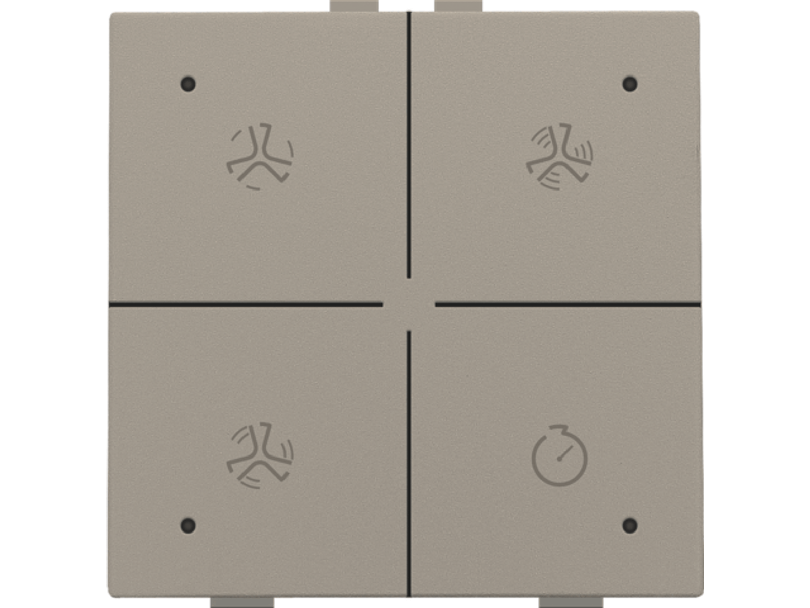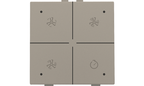 Met deze drukknop stel je vier ventilatiestanden in. Hij wordt via een klikmechanisme op de muurprint bevestigd. Een led geeft aan in welke stand de ventilatie staat. Mechanisme inclusief toets. Afwerkingskleur: bronze.