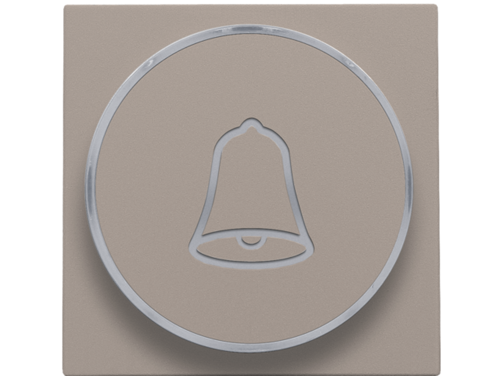 Afwerkingsset met doorschijnende ring met belsymbool voor drukknop 6 A met amberkleurige led met E10-lampvoet, bronze