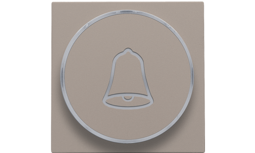 Centraalplaat met doorschijnende ring voor drukknop. De zijring met belicoon laat toe dat de amberkleurige led aangeeft wanneer het licht geactivieerd is. Het kan ook als een soort signaallamp gebruikt worden. Afwerkingskleur: bronze.