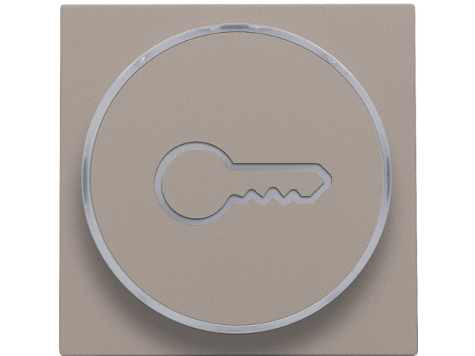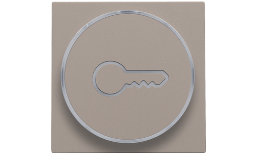 Centraalplaat met doorschijnende ring voor drukknop. De zijring met sleutelicoon laat toe dat de amberkleurige led aangeeft wanneer het licht geactivieerd is. Het kan ook als een soort signaallamp gebruikt worden. Afwerkingskleur: bronze.