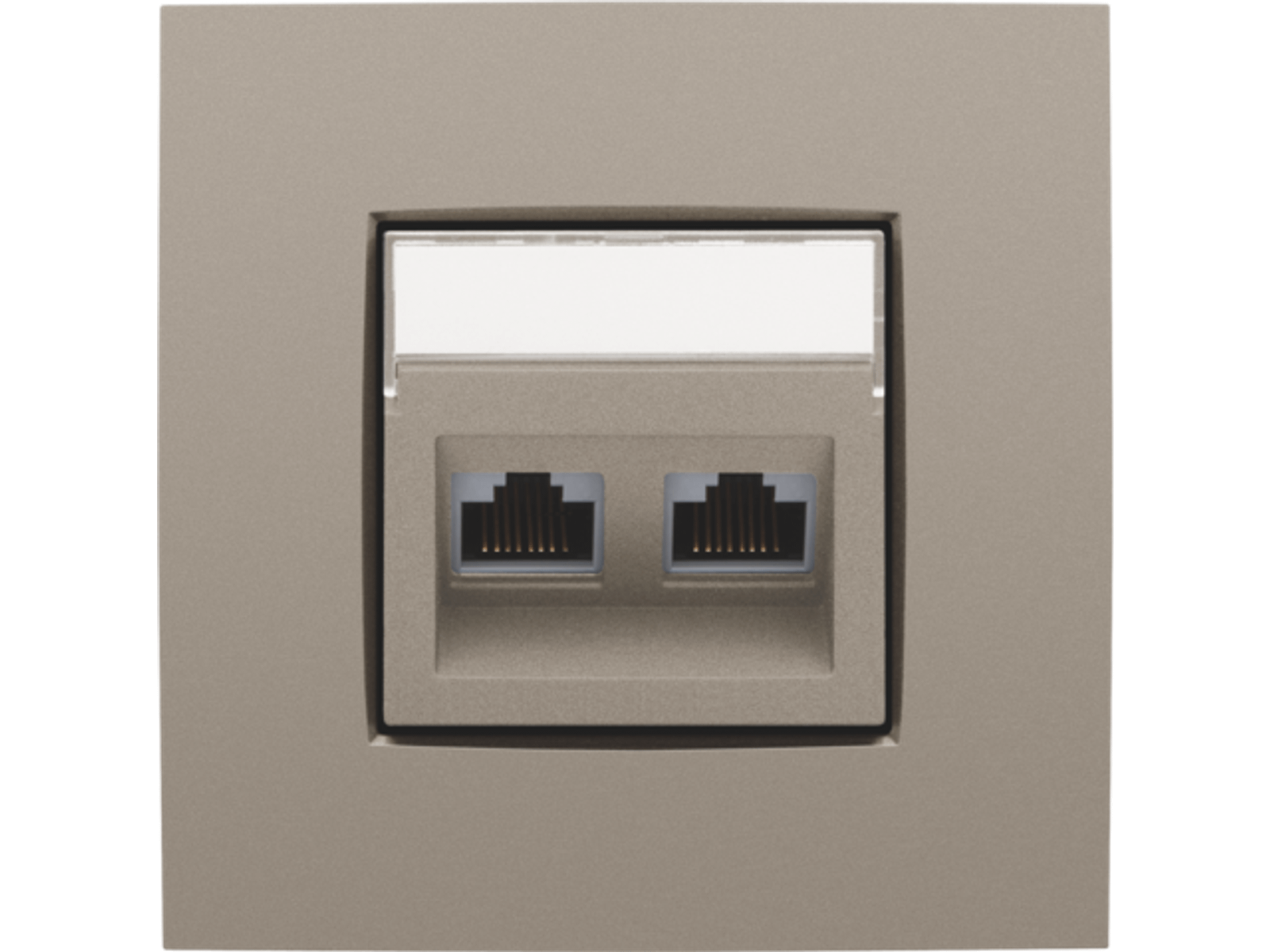 Centraalplaatje voor 2 RJ outlets in een schuine uitvoering. Het centraalplaatje heeft een transparant tekstveld waarin je eenvoudig teksten en iconen kan inbrengen. Afwerkingskleur: bronze.