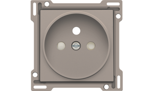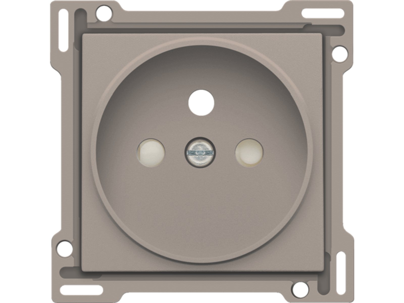 Centraalplaat voor inbouwstopcontact met penaarde en beschermingsafsluiters. Deze centraalplaat dient gebruikt te worden op een stopcontact met inbouwdiepte van 21mm. Afwerkingskleur: bronze.