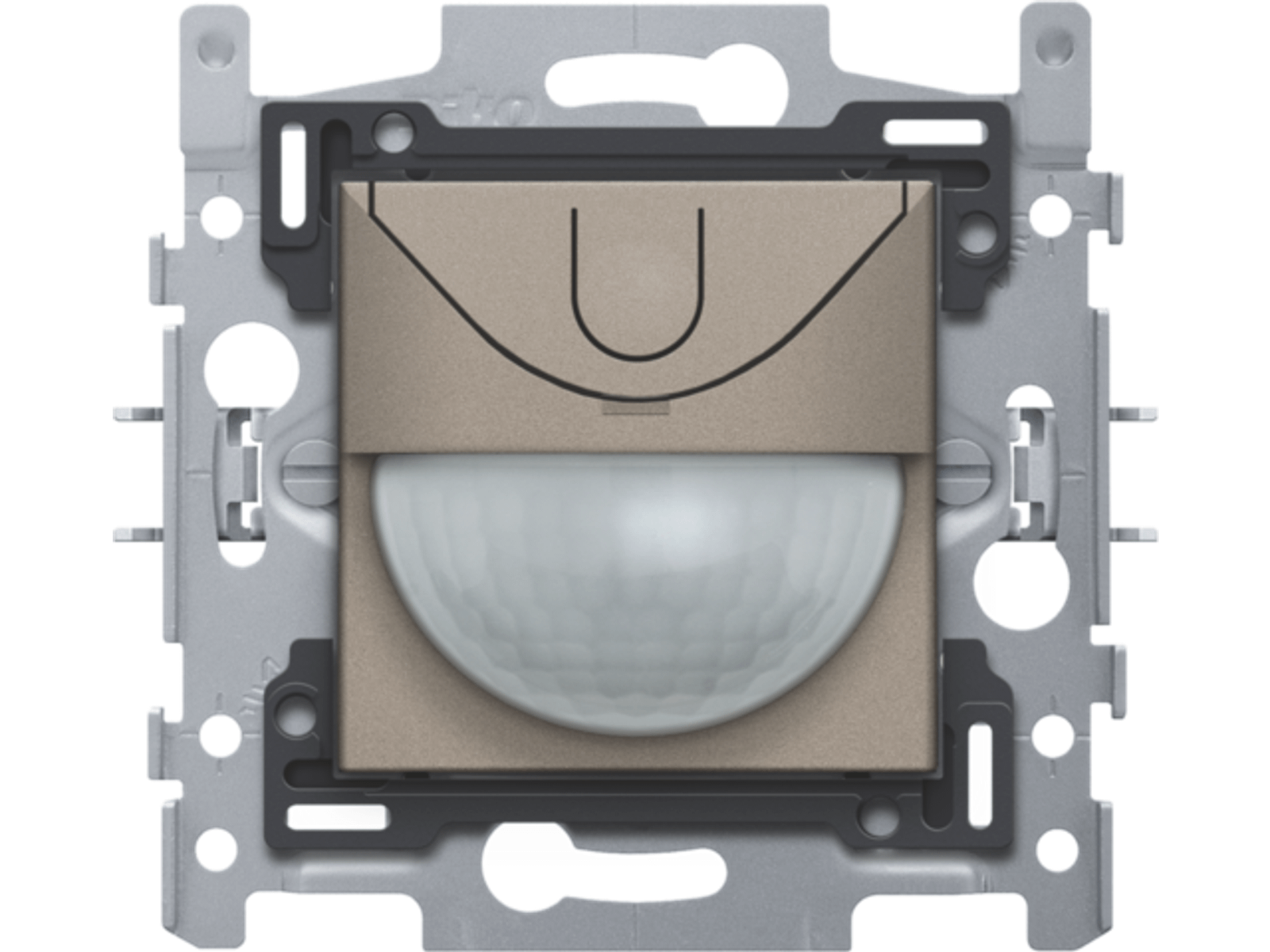 Met deze geïntegreerde bewegingsmelder met Nikobus-interface-actor, heb je een waarnemingshoek van 180° horizontaal en 60° verticaal waarin elke beweging gedetecteerd wordt. Bij een detectie van een beweging worden zoals je wenst vooraf bepaalde lichten geactiveerd, Afwerkingskleur: bronze