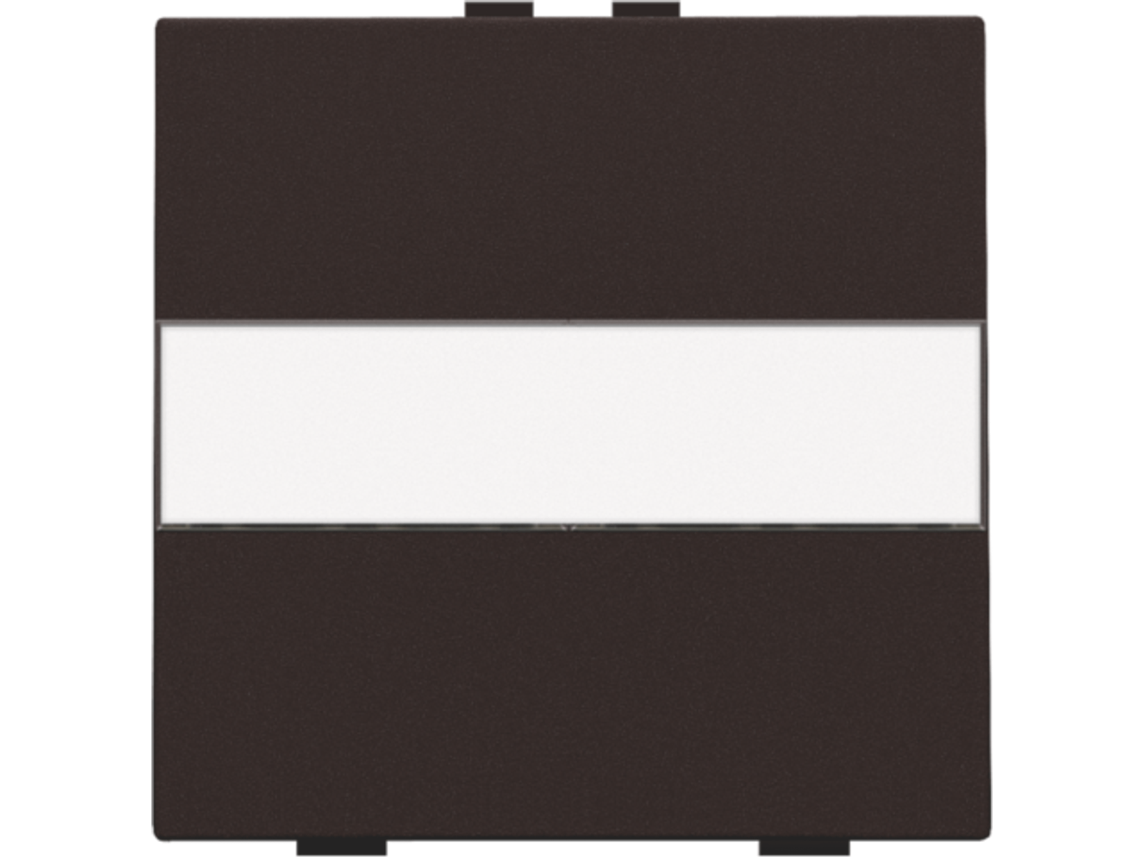 Een enkelvoudige toets met ruimte voor het aanbrengen van een eigen tekst voor een busdrukknop. Afwerkingskleur: dark brown.