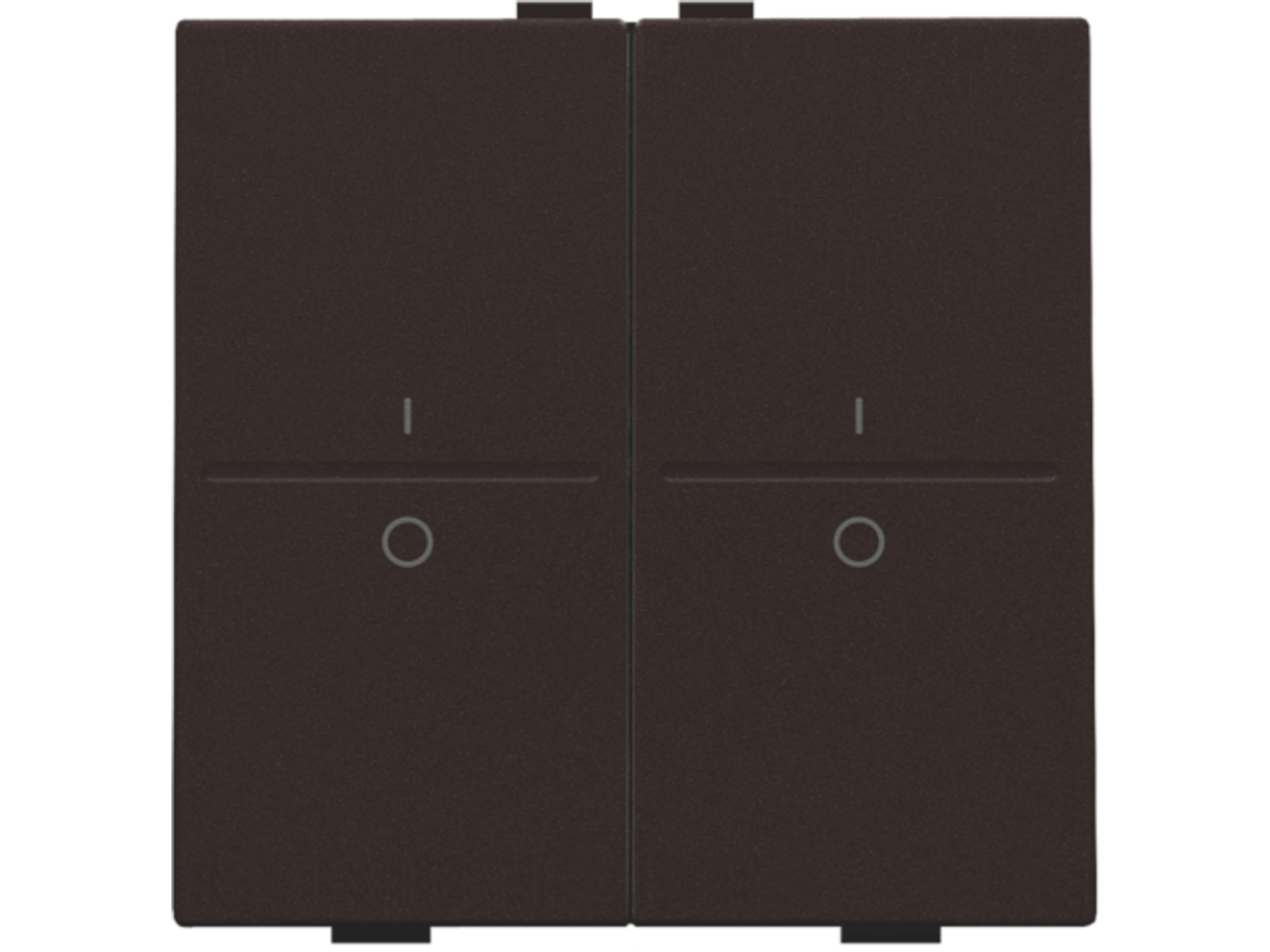 Tweevoudige toets met opdruk I en 0 voor draadloze schakelaar of drukknop met 4 bedieningsknoppen, dark brown