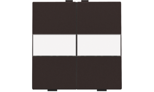 Een tweevoudige toets met ruimte voor het aanbrengen van een eigen tekst voor een busdrukknop. Afwerkingskleur: dark brown.