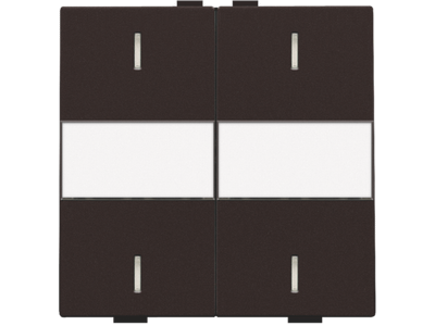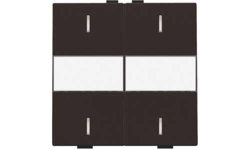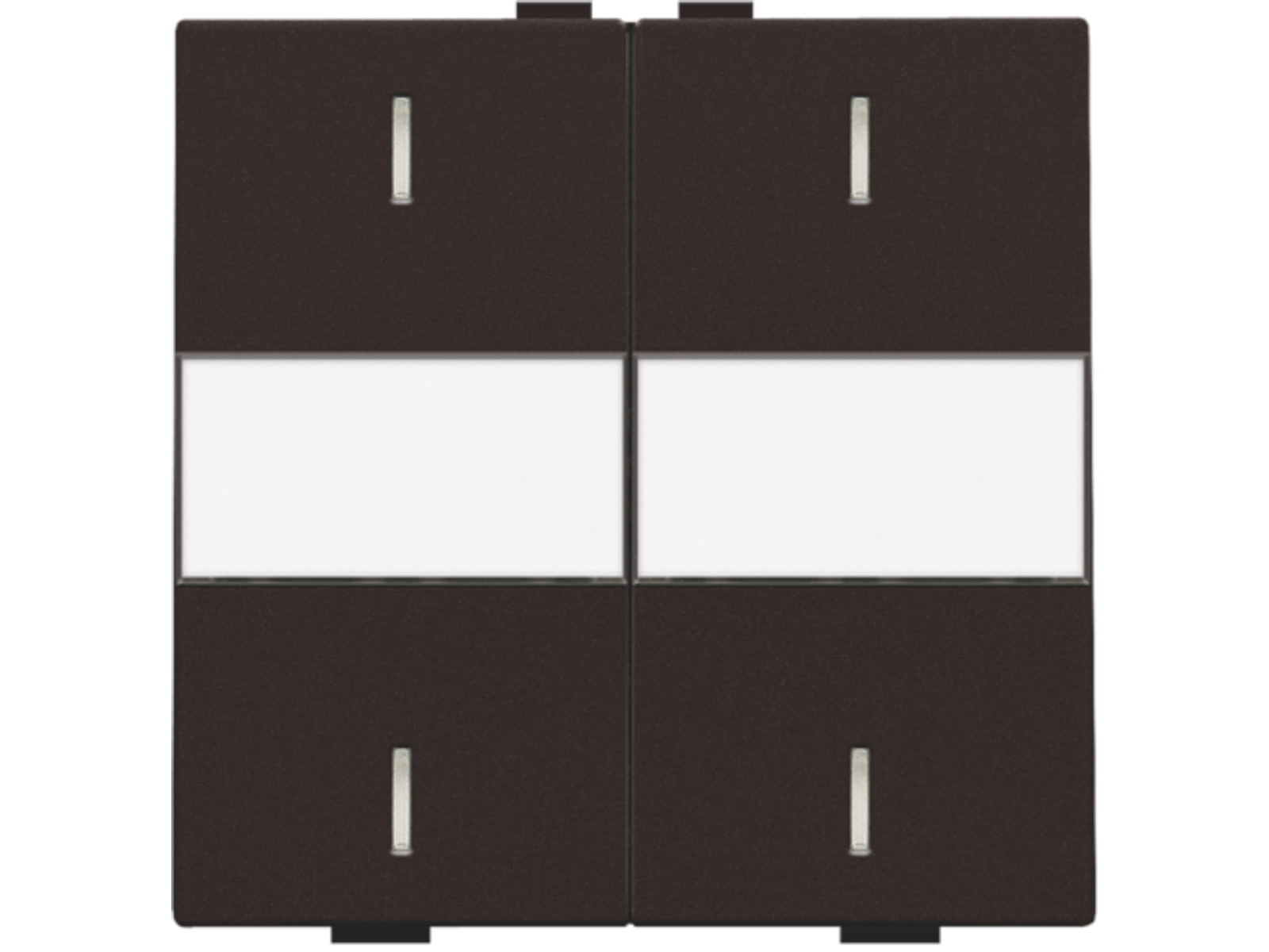 Tweevoudige toets voor een busdrukknop met 4 bedieningsknoppen en 4 feedbackleds. De toets is voorzien van een tekstveld. Afwerkingskleur: dark brown.