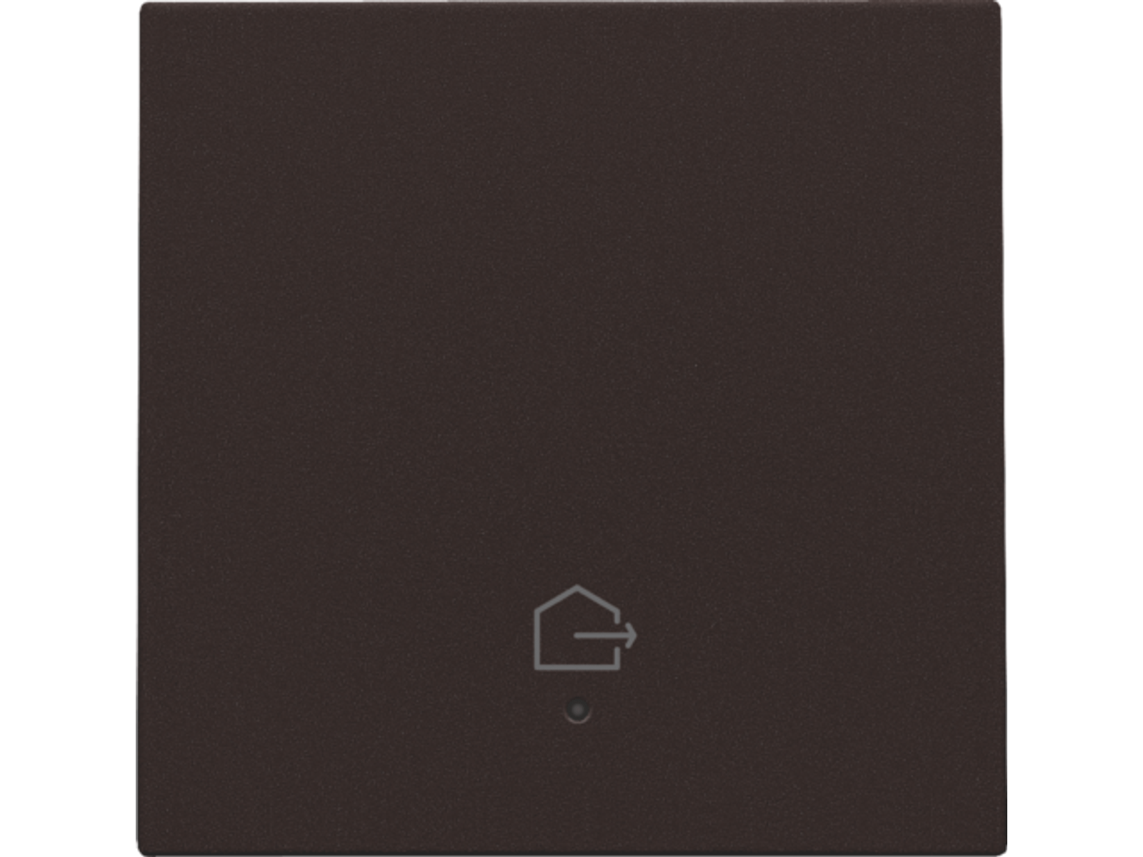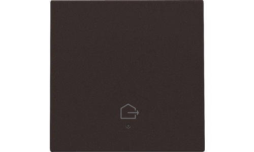 Afwerkingsset met lens voor geconnecteerde enkelvoudige schakelaar met symbool "woning verlaten", dark brown.