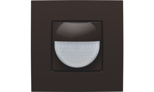 Afwerkingsset voor de binnenbewegingsmelder voor Niko Home Control. Met de toets schakel je het licht zelf aan en uit. Er brandt een led als je de bewegingsmelder manueel aanschakelt. Afwerkingskleur: dark brown.