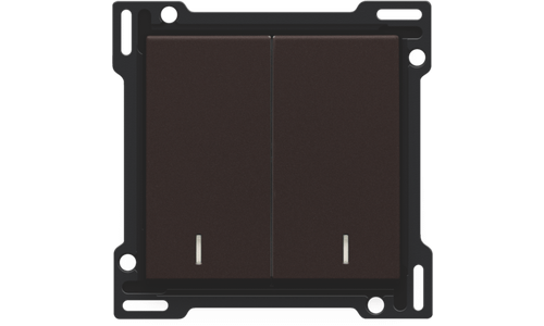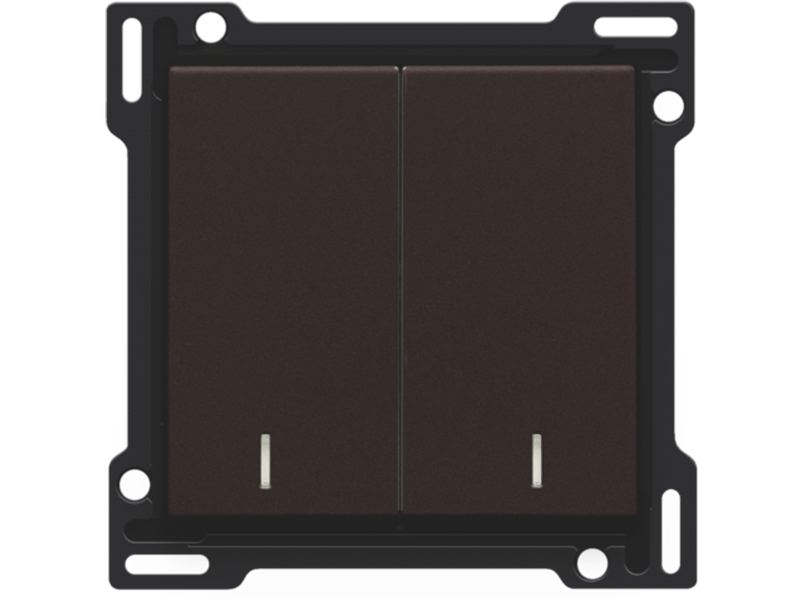 Centraalplaat met 2 toetsen met telkens een eigen lens. Hiermee kan je vlot verschillende lichtpunten bedienen in 1 of meerdere ruimtes. Achter de lens kan je een compacte ledmodule plaatsen zodat je vlot ziet wanneer een licht ingeschakeld is. Afwerkingskleur: dark brown.