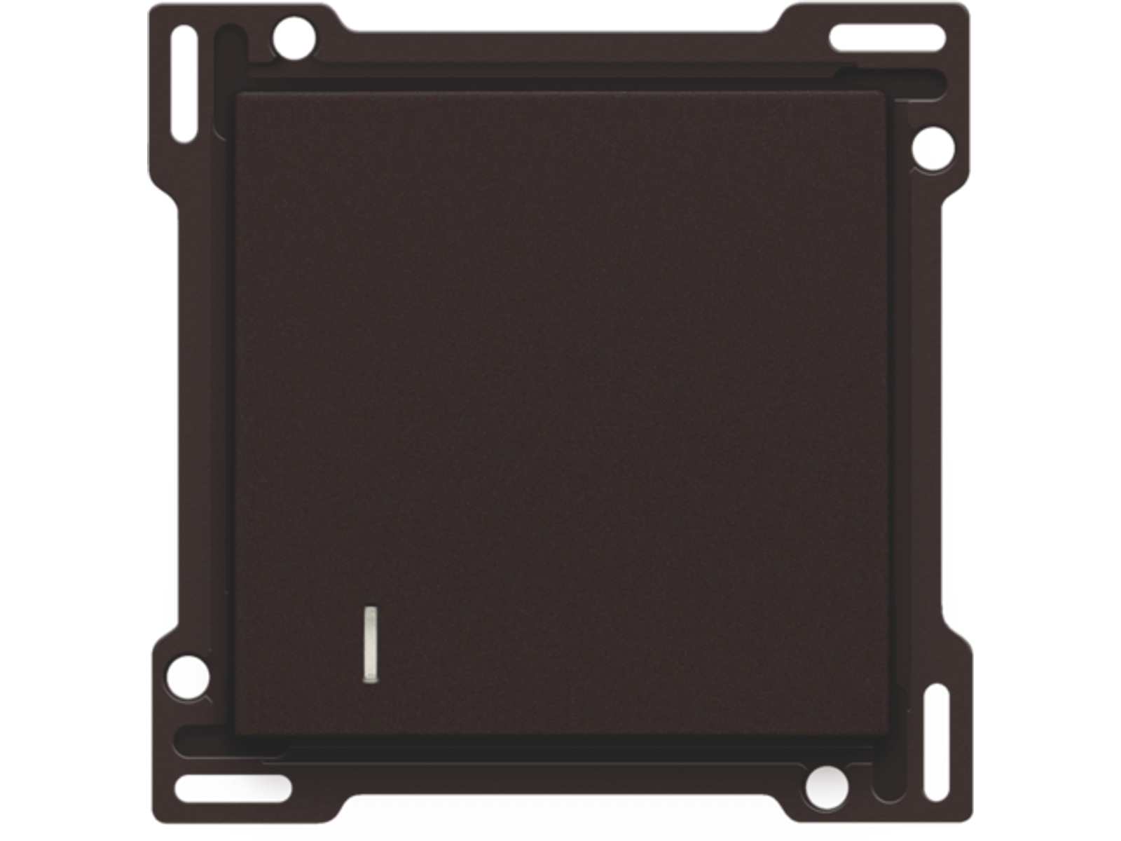 Centraalplaat voor een hotelschakelaar. Deze schakelaar wordt bijna exclusief gebruikt in hotelkamers. Aan de bovenkant van de schakelaar kan je de hotelkaart inbrengen waarbij door middel van de lens aangeven wordt dat je de lichten kunt bedienen in je kamer. Afwerkingskleur: dark brown.