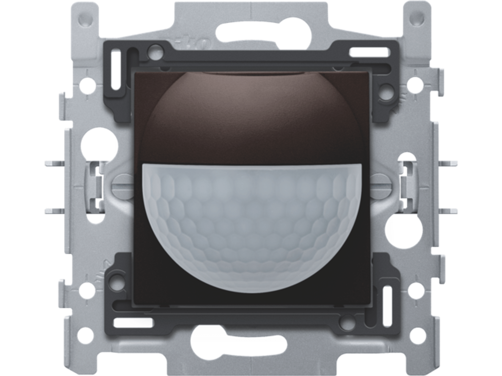 Met deze geïntegreerde binnenbewegingsmelder met schakelcontact 10 A, 230 V, heb je een waarnemingshoek van 180° horizontaal en 60° verticaal waarin elke beweging gedetecteerd wordt. Bij een detectie van een beweging worden zoals je wenst vooraf bepaalde lichten geactiveerd. Afwerkingskleur: dark brown