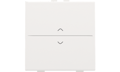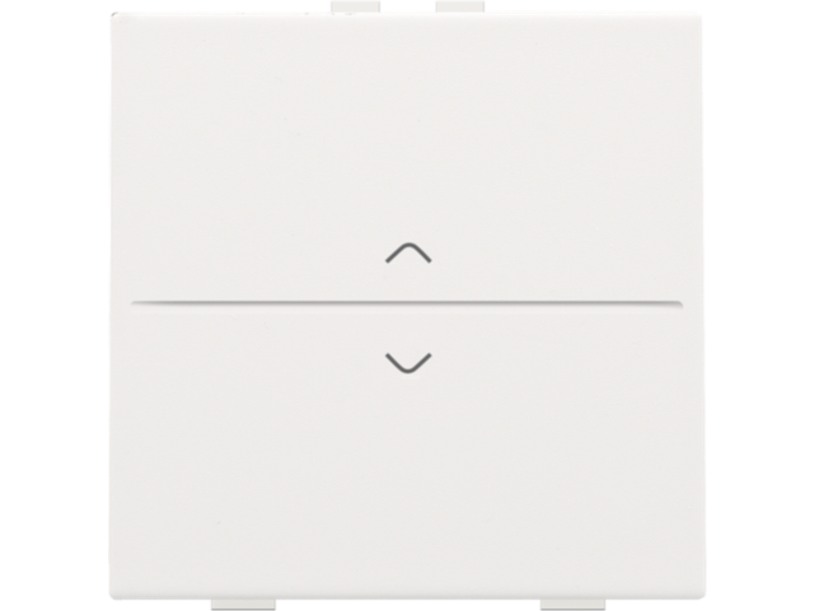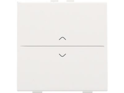 Een enkelvoudige toets met symbool 'op' en 'neer', voor een busdrukknop. Afwerkingskleur: white coated.