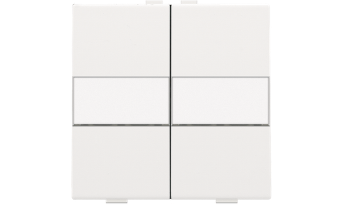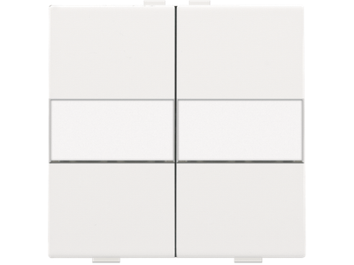 Een tweevoudige toets met ruimte voor het aanbrengen van een eigen tekst voor een busdrukknop. Afwerkingskleur: white coated.