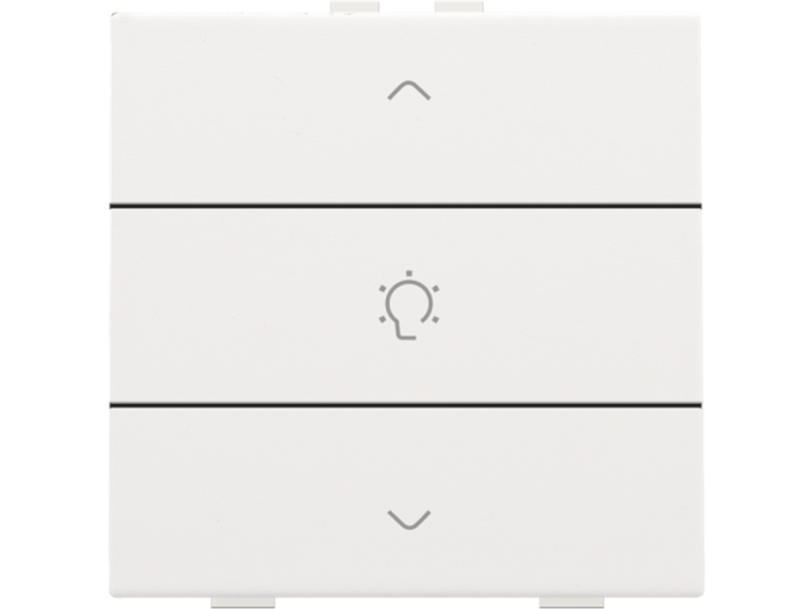 Met deze drukknop dim je één lichtpunt of lichtkring. Hij wordt via een klikmechanisme op de muurprint bevestigd. Mechanisme inclusief toets. Afwerkingskleur: white coated.