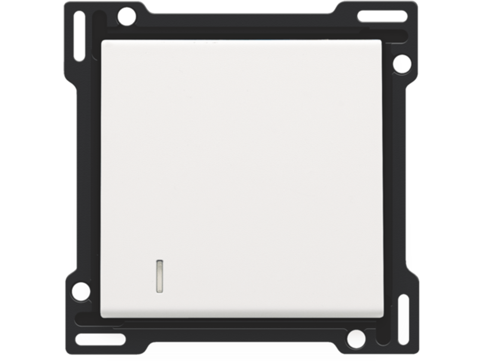 Centraalplaat uitgevoerd met een enkelvoudige drukknop met lens. Met deze drukknop kan je 1 verlichting bedienen. De lens biedt je de mogelijkheid om een ledmodule achter te plaatsen zodat je kan zien of het licht al dan niet ingeschakeld is Afwerkingskleur: white coated.