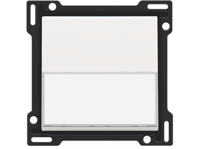 Centraalplaat voor enkelvoudige drukknop met transparant tekstveld. In het transparante tekstveld kan je eenvoudige korte aanduidingen of iconen aanbrengen.
