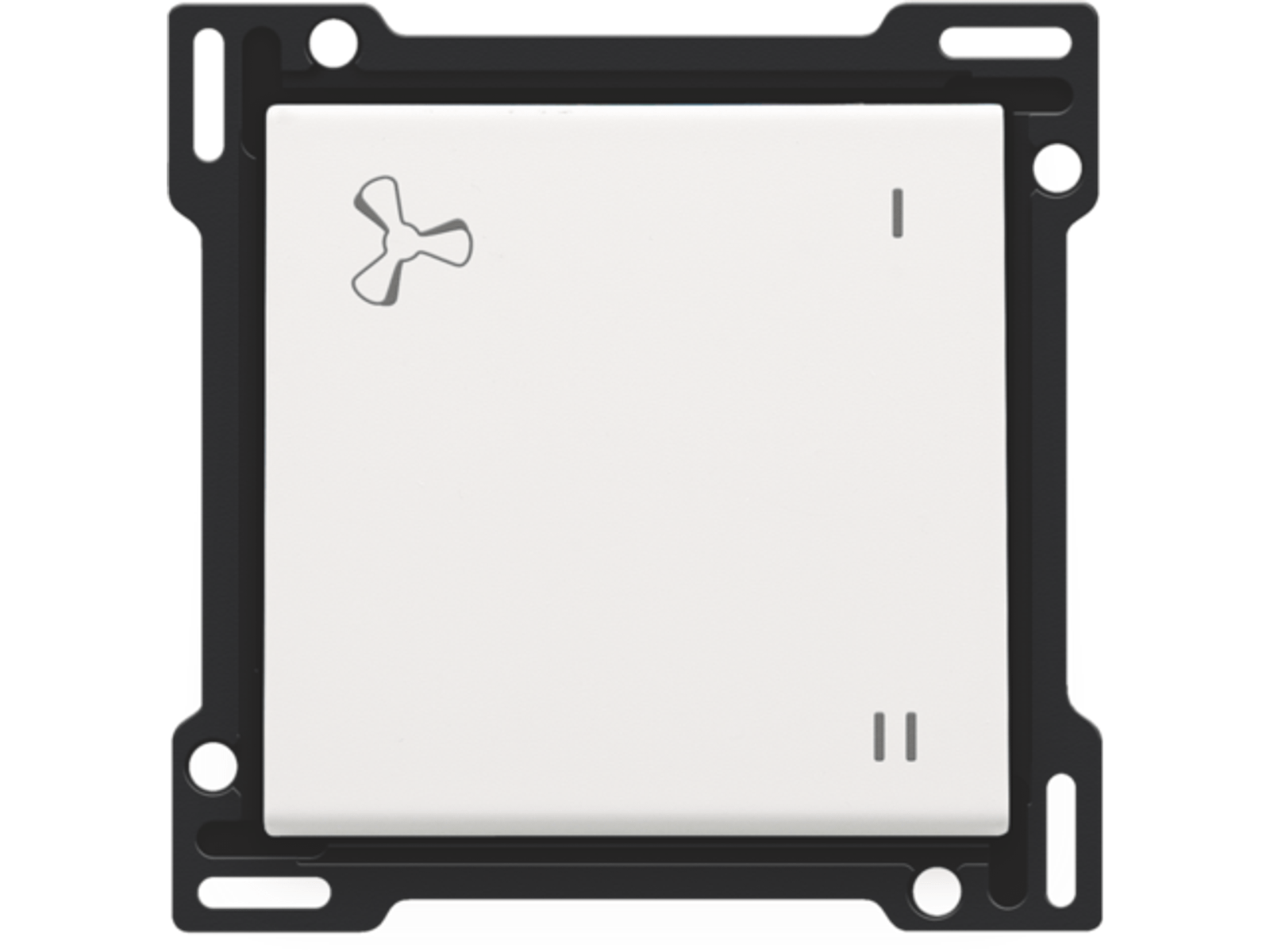 Centraalplaat met 1 toets met een ventilatie icoon aanduiding. Deze toets wordt gebruikt voor de bediening van mechanische gecontroleerde ventilatie.Afwerkingskleur: white coated.