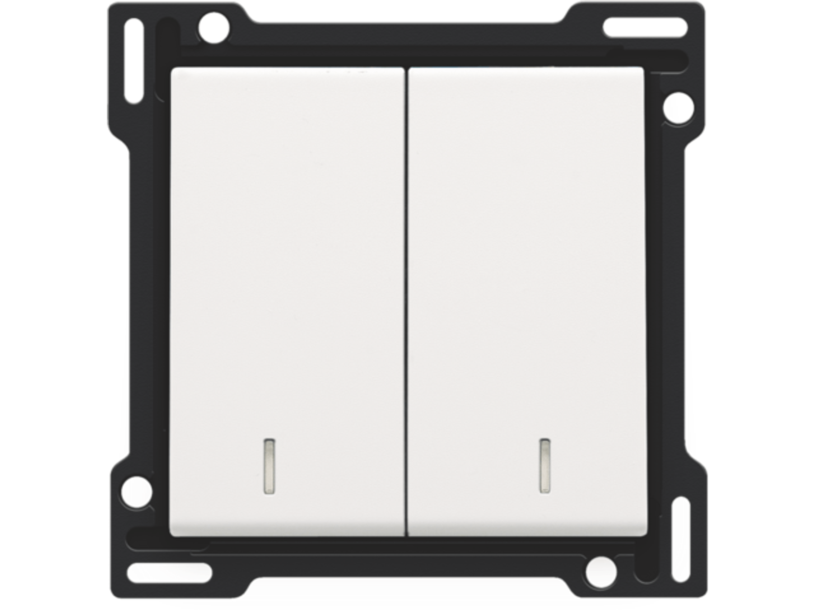 Centraalplaat met 2 toetsen met telkens een eigen lens. Hiermee kan je vlot verschillende lichtpunten bedienen in 1 of meerdere ruimtes. Achter de lens kan je een compacte ledmodule plaatsen zodat je vlot ziet wanneer een licht ingeschakeld is. Afwerkingskleur: white coated.