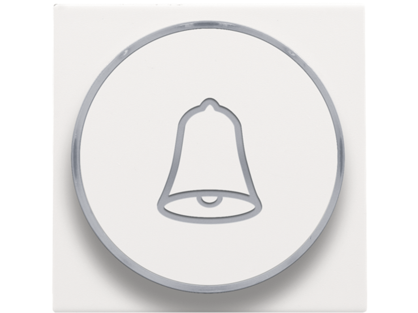 Afwerkingsset met doorschijnende ring met belsymbool voor drukknop 6 A met amberkleurige led met E10-lampvoet, white coated