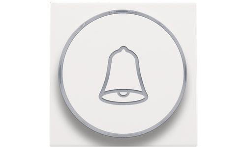 Centraalplaat met doorschijnende ring voor drukknop. De zijring met belicoon laat toe dat de amberkleurige led aangeeft wanneer het licht geactivieerd is. Het kan ook als een soort signaallamp gebruikt worden. Afwerkingskleur: white coated.