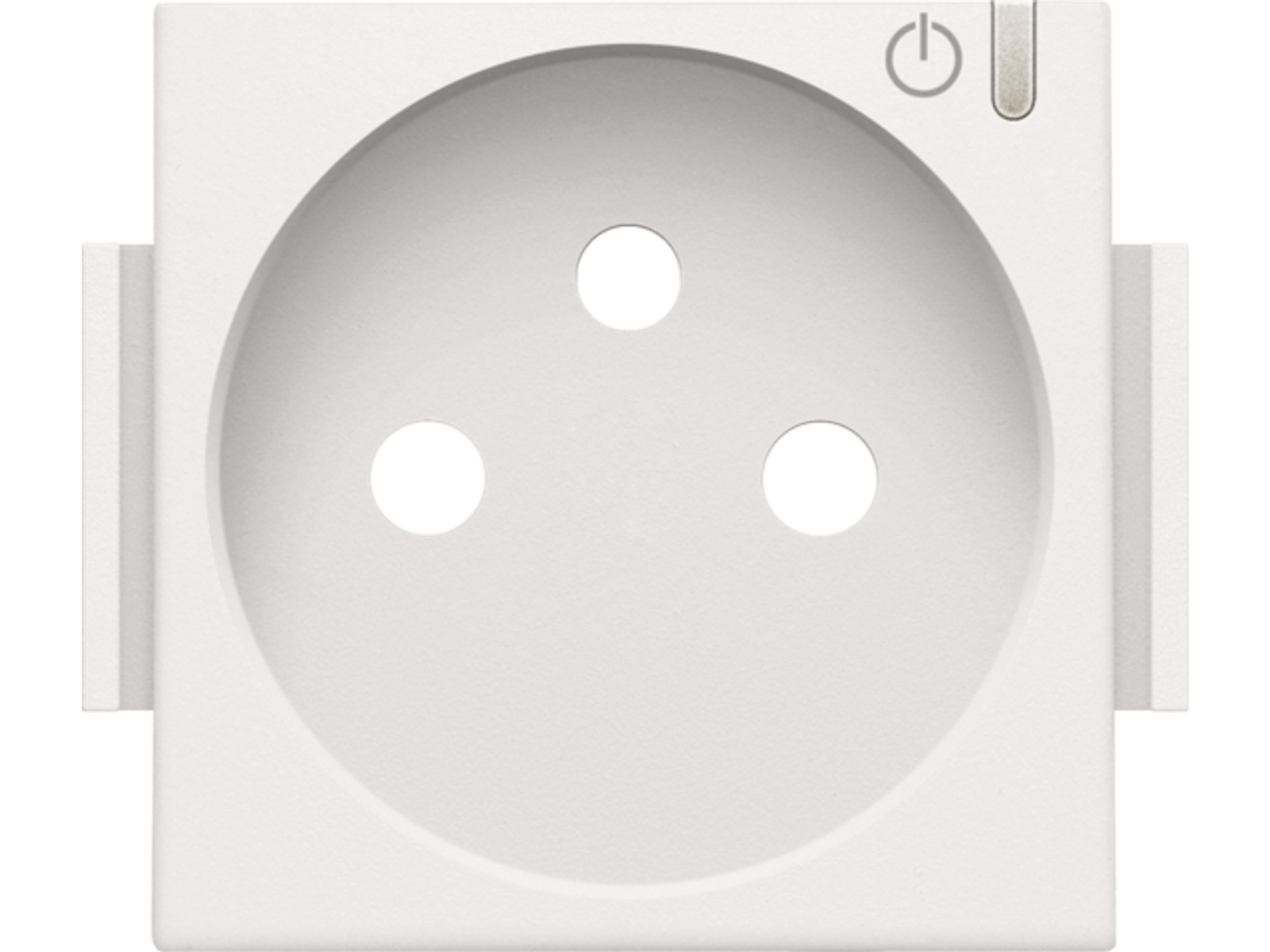 Afwerkingsset voor geconnecteerde schakelbare wandcontactdoos met penaarde en bedieningsknop, white coated