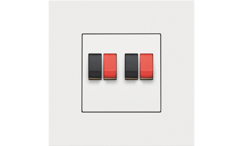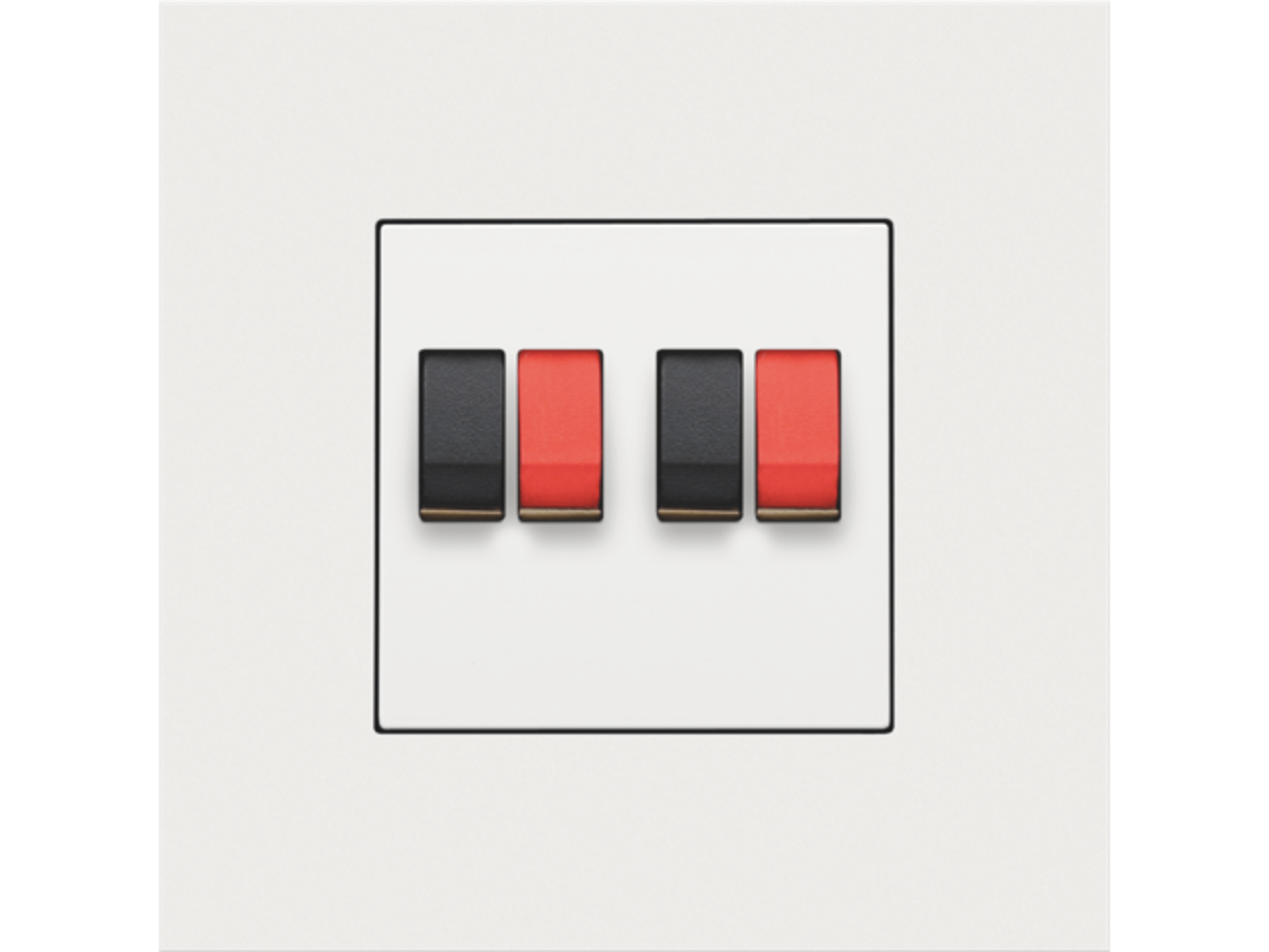 Centraalplaat met tweevoudige luidsprekeringangen. Afwerkingskleur: white coated.