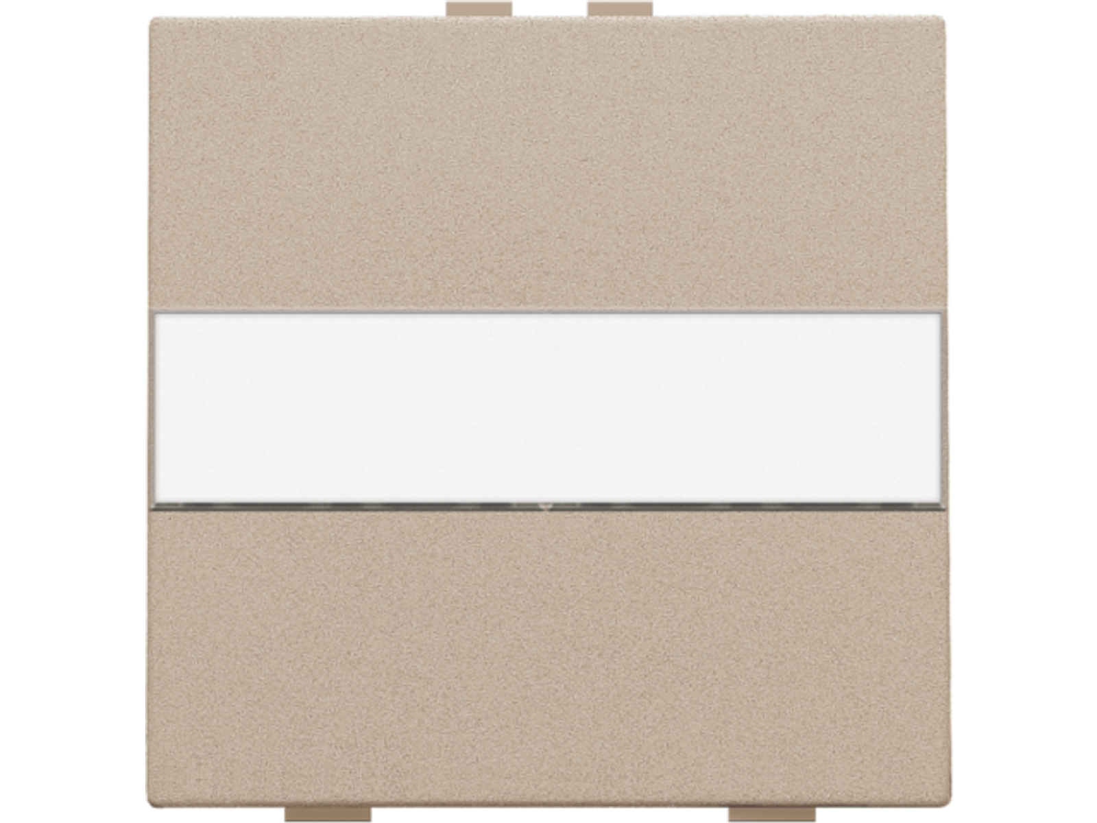 Een enkelvoudige toets met ruimte voor het aanbrengen van een eigen tekst voor een busdrukknop. Afwerkingskleur: champagne coated.