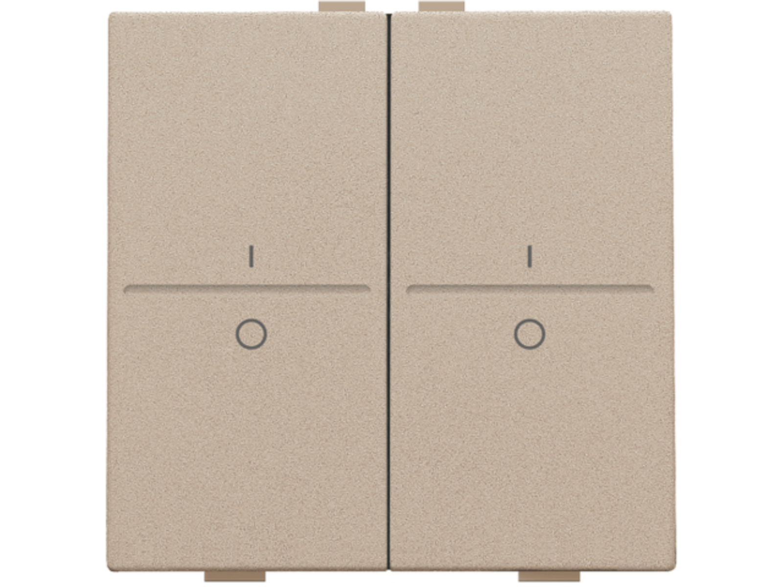 Een tweevoudige toets met symbool "I" en "0" voor een busdrukknop. Afwerkingskleur: champagne coated.
