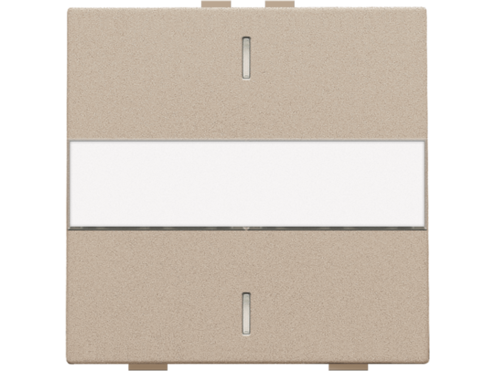 Enkelvoudige toets voor een busdrukknop met 2 bedieningsknoppen en 1 of 2 feedbackleds. De toets is voorzien van een tekstveld. Afwerkingskleur: champagne coated.